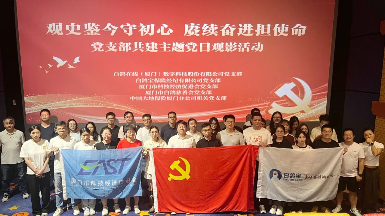 为深入学习贯彻党的二十大精神,加强爱国主义教育,8月15日,白鸽在线(厦门)数字科技股份有限公司党支部、白鸽宝保险经纪有限公司党支部、厦门市科技经济促进会党支部、厦门市白鸽慈善会党支部与中国大地保险厦门分公司机关党支部共同举办共建主题党日观影活动,观看爱国主义题材电影《南京照相馆》。