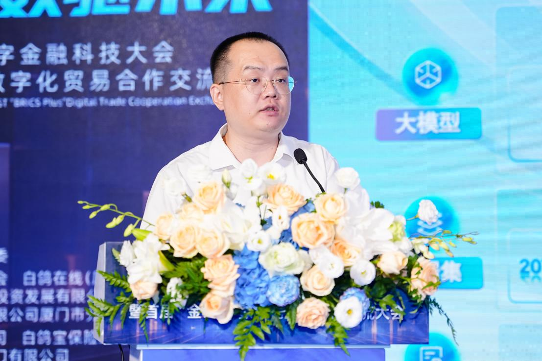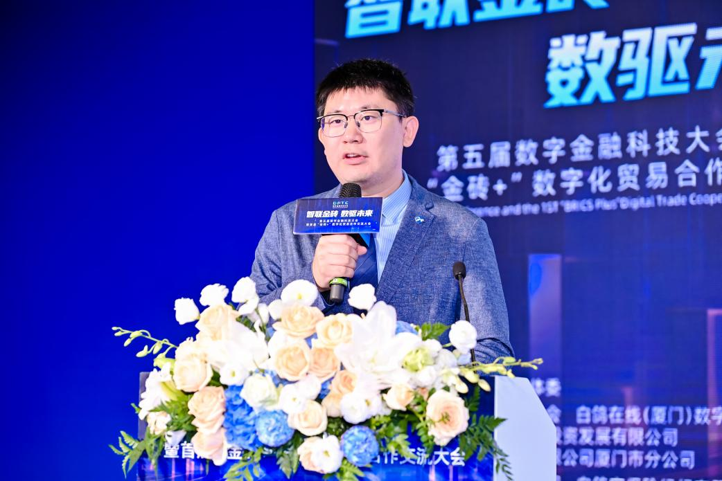 厦门市科技经济促进会会长、白鸽在线(厦门)数字科技股份有限公司董事长涂锦波作为主办方代表致辞。他表示,过往四届大会汇聚多方资源,共同探索区块链、人工智能、大数据在金融领域的创新应用,持续为行业提供交流平台与智慧支持。数字化贸易为“金砖+”国家及广大新兴市场创造前所未有的合作空间和增长机遇,大会聚焦两大核心目标:一是推动技术落地与产业融合,重点探讨人工智能等创新技术在金融与贸易场景中的合规、安全、高效的解决方案,加速智能应用赋能实体经济;二是构建开放、互信的“金砖+”数字化合作机制,促进智能金融与数字贸易深度融合,让数字化成果更加普惠、共享。
